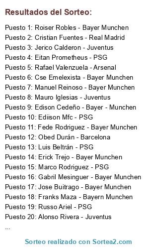 - Puesto 1: Roiser Robles - Bayer Munchen