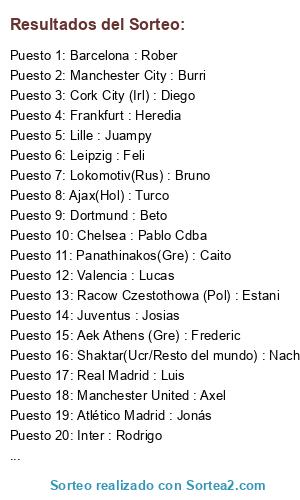 Resultados del sorteo:
