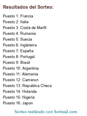 Resultados del sorteo: