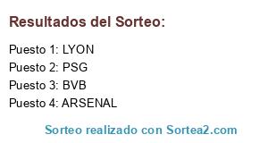 Lista de participantes: PSG, LYON, BVB, ARSENAL.