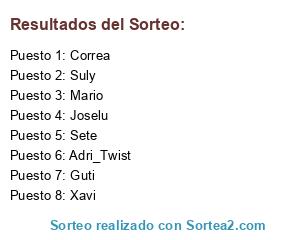 Lista de participantes: Mario, Guti, Suly, Joselu, Xavi, Correa, Sete, Adri_Twist.
