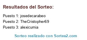 Lista de participantes: josedecarabeo, daniel7234, midas 667, Brnji, espertaco, LuisDaniel131, Balkanin, DEMOLICION-MAN, by_adry, cuenca55, ByChaka, saury_ , juani_mera69, Dapebien17, ALROSE98, appletouch16, tulkan2001, DarkPatata123456, tomymatador, - xx-roiforever-xx, javierplus , angarmartin, SSAGIT , yensai10, mesías_509, Arnaton, DrFOSFORITO, PEPOGREMARO, ADRIAN_2002_AMU, mamu151, adrysantos8, Juatach05, alexis25michelin, ElKiller9356, TheTibuSniperESP, pibi2000, SSORTO, luismedellin, pabloramoszea, DSEizmeni, dante20122, Pedro95zzz, azmud, ELOYPINEDA99, Leevan, ZomBie_Gamer, LirekeT , elgrandisimomoro, HEROBRINEDU, X-EL14S_4NDRES-X , tebyarce, lean1235, linojuvinao62, iMaGGiK-_Exotiik, Macobra14, lucaaaaas__wedc, Dr-Snnix, sebastiamprado , tejedadefez, KillerGomezYT, BuLL__RAYJA__ESP, Alex098, The_Poll-ATeiToR, EDWINALAIN999, Yiyo-020400, Don_ramon17, millos2112, sinlufi19, joselitoh3, Adrianfg77, theiviproxd, EmilioGRz, cesar10001 , jorge15singer, gasper151515, Joan_12bp, tenaciusfede, jean-gtav , facu_blaystoys, Luckhammer14, XHKX_BigFAT, harryfred11, Tr-Gamer222, Sicario_56, skill4GAMEs, patxe14, TheCristopher69, ruben gamer, Carparbul, marcos3estrellas, julolfu, XxTheSantaxX, autobusmalaga, alexsniperx_10, iMagiK_Vigo , hamza_ozil, Josi Rex, kevincitopxdx, lonchi7, Leonardo Valerio, alexicumia, sanchez1923, javipuerta12.