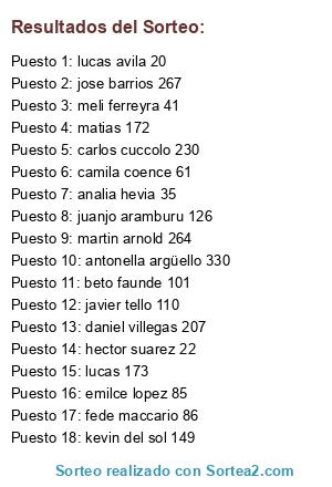 Resultados del sorteo: