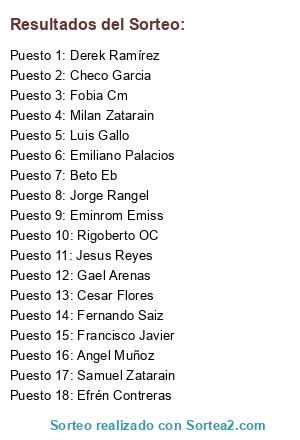 Lista de participantes: Derek Ramírez, Rigoberto OC, Milan Zatarain, Jorge Rangel, Samuel Zatarain, Gael Arenas, Checo Garcia, Fernando Saiz, Emiliano Palacios, Jesus Reyes, Efrén Contreras, Eminrom Emiss, Beto Eb, Luis Gallo, Francisco Javier, Cesar Flores, Angel Muñoz, Fobia Cm.