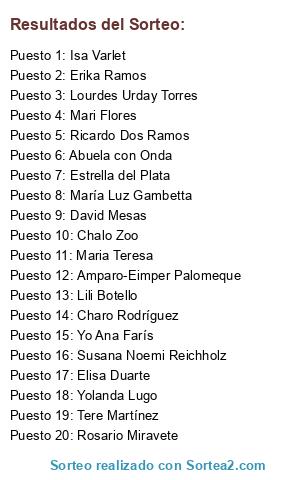 Lista de participantes: Chalo Zoo, Abuela con Onda, Inés Cristina Carrascosa Jiménez, Susana Noemi Reichholz, Elisa Duarte, Maria Teresa, Ricardo Dos Ramos, Amparo-Eimper Palomeque, Tere Martínez, Yolanda Lugo, Erika Ramos, David Mesas, Manu Pouso, Isa Varlet, Lourdes Urday Torres, Lill Aranguren, Yo Ana Farís, Charo Rodríguez, María Luz Gambetta, Mari Flores, Estrella del Plata, Lili Botello, Rosario Miravete.