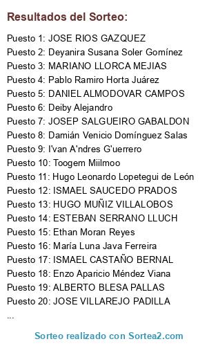 - Puesto 25: CARLOS DIAZ ABRIL