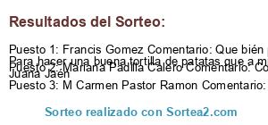 - Ganador 1: Francis Gomez Comentario: Que bién participo Para hacer una buena tortilla de patatas que a mis niños les encanta❤ Juana Jaén
