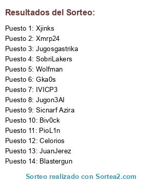 Lista de participantes: Jugosgastrika, Jugon3AI, Celorios, Blastergun, IVICP3, Xjinks, Sicnarf Azira, Wolfman, Gka0s, PioL1n, Biv0ck, JuanJerez, SobriLakers, Xmrp24.