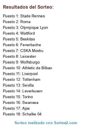 Lista de participantes: Tottenham, Sevilla, Olympique Lyon, Leicester City.