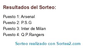 Lista de participantes: Q.P.Rangers, P.S.G, Arsenal, Inter de Milan.