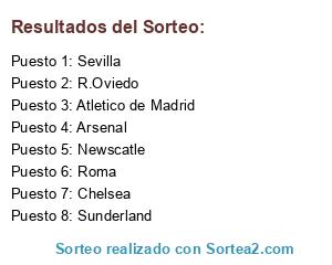 Lista de participantes: Atletico de Madrid, Sunderland, Chelsea, Roma, R.Oviedo, Newscatle, Arsenal, Sevilla.