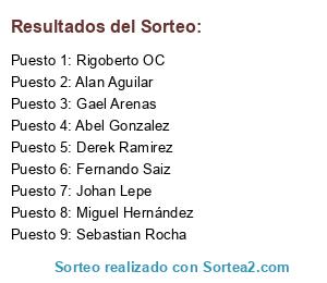 Lista de participantes: Gael Arenas, Miguel Hernández, Derek Ramirez, Abel Gonzalez, Rigoberto OC, Johan Lepe, Alan Aguilar, Fernando Saiz, Sebastian Rocha.