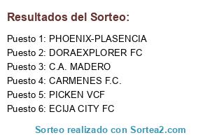 Lista de participantes: CARMENES F.C., C.A. MADERO, ECIJA CITY FC, PHOENIX-PLASENCIA, PICKEN VCF, DORAEXPLORER FC.