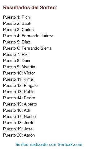 Resultados del sorteo: