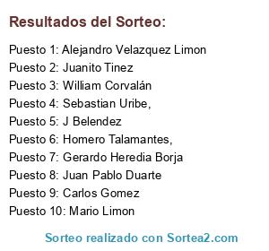 Lista de participantes: William Corvalán, Juan Pablo Duarte, Gerardo Heredia Borja, Homero Talamantes,, Mario Limon, Alejandro Velazquez Limon, Sebastian Uribe,, Juanito Tinez, Carlos Gomez, J Belendez.