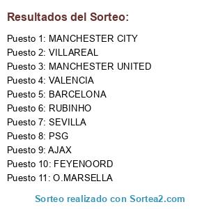 Lista de participantes: FEYENOORD, VALENCIA, MANCHESTER UNITED, BARCELONA, O.MARSELLA, VILLAREAL, PSG, SEVILLA, MANCHESTER CITY, RUBINHO, AJAX.