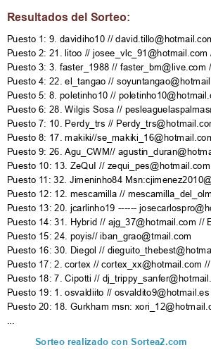 Accesibilidad del sorteo: El sorteo es público. Todo el mundo podrá acceder a él desde el listado de sorteos guardados.