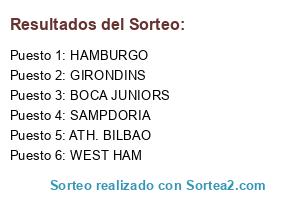 Lista de participantes: HAMBURGO, GIRONDINS, ATH. BILBAO, BOCA JUNIORS, WEST HAM, SAMPDORIA.