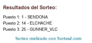 Lista de participantes: , 1 - SENDONA, 2 - HUNTER X HUNTER, 3 - ACIDD_91, 4 - RAYA, 5 - ALCE PULCRO, 6 - LEÑE, 7 - SISU_, 8 - CONED, 9 - BERT0LD, 10 - POL 1990, 11 - P1NS, 12 - BLACKLOTUS, 13 - CHOPEADOR V12, 14 - ELCHACHE, 15 - ANTT, 16 - AMARILLODEALT, 17 - IMBETOX, 18 - TSOUKALICIOUS, 19 - ERCANIJO, 20 - NOTFOUND404, 21 - GESINK, 22 - ENDEN WIGGIN, 23 - RABON GARSIA, 24 - JESUSFCO55, 25 - GUNNER_VLC, 26 - MORGANA1982.