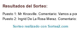 - Ganador: Mr Knoxville. Comentario: Vamos a por ello!!