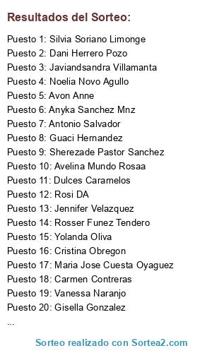Lista de participantes: Carmen Moreno Llorente, Ana Enero, Monica Marmol, Yolid Olid, Lola Plaza, Pilar Pinto, Chary Vian, Vanessa Cuadrado Palomo, Yolanda Oliva (3 participaciones), Xandra Miguelez Mendez, Luisa Menargues, Maria Jose Mateo Hurtado (3 participaciones), Prado Miguelez (3 participaciones), Felisa Martinez Castellano, Loli Simon (3 participaciones), Esther Abellan, Gemma Jimenez, Maria Aurora Cuesta Valle, Noemí Peinado, Carmen García Perez, Mara Vaño, Pili Piles, Avon Anne, Lau Ny K (3 participaciones), Carmen Franco Samper, Montse Fernandez Martin, Jessica Rodriguez, Ana Gonzalez, Raquel Bueno, Lorena Rivas Perez, Rosario GT, Pulseras Keka, Angeles Sanchez Sicilia, Ana Espejo, Nata Matnitasalba, Sandra Remón Blanco, Punto de Cruz Variado, Elena Salvador, Ana Bertol, Lourdes Gomez Castaño, Ainodea Manualidades, Soledad Tienda Moina, Milamar Valencia, Almudena Serrano Artesania Actual, Carmen Castellano Juarez, Patricia Valderrama Boada, Sarah García Srip, Silvi Carmona, Kirikosas madeheads, Feli Gea Perez, Clau Marianelli, Montse Gaitán Rufo, Carolina Pozuelo, Les Fofuchetes, Noemi Paniagua (3 participaciones), Lole Magdaleno Yepes, Begoña Ga VI (3 participaciones), Dulce Nuñez, Mariel Dieguez Ojeda, Dulces Caramelos, FT Bordados. Bordados verativos en Gijon. Especialidad bebes., Esmeralda Verde, Artesania EQ, Ana Luis Gonzalez, Laura Ruiz, Ana Marya Sanchez, Inma Santamaria, Juan Lopez, Inma Jerez Ruiz, Ines Fernandez, Maria Poveda Ruiz, Rosa Prados, Maria José Palomares Valiente, Mari Mar Ob, Encarni F. Estevez, Belen Trujillo, Maria Fernandez Tor, Fieltro Felt Fieltro Flanel, Maria Jose Cuesta Oyaguez, Vanesa Batller Carrascal, Soraya Lera, Pscual E Puri, Silvia Soriano Limonge, Elena Fernadez Roza, Javiandsandra Villamanta, Julia Maria Gomez Andres, Dani Herrero Pozo, Marian García, Angela Soler Masip, Mar Tuki, Nieves Ruiz, Cris Jurado, Reyes Far, Carmen Arrieta Quesada, Anabel Gonzalez Fernandez(2 participaciones), Maritza Rodriguez Ravelo, Wiliams Medel, Rosi DA, Ricardo Casanova, Rosa Dominguez, Maria Dominguez, Gorety Alonso, Maria Obdulia García, Ezequiel Gonzalez Molina, Tathiana Dominguez, Erick Lopez, Sergio Dominguez, Gladis Acevedo, Rosa Maria Acevedo, Srta Barreto, Estefanía Mormeneo Diaz, Sofia Gonzalez, Maria Hidalgo Rodriguez, Gisella Gonzalez(2 participaciones), Marian Sepulveda Cuadros, Jessica Rubio Berjon, Hecuba Mjc, Mari Luz Lopez, Dominique Bolaño Morell, Hortensia Arellano Luque, Amor Prieto, Desiree Valero Blas, Vanessa Naranjo, Qkdas Qkdas, Angi Safon Panisello, Jo que bonito, Beatriz Portero Garcia, Clara Sabó Sabonissim Jabones Artesanos, Hada Adea, Las Cositas de Inma, Yolanda Fernadez Lago, Sarai Hernadez, Maria Regalado, Aranzazu Laguna Gomez, Remedios García Melero, Paco Espin, Campanilla VA, Pakyta Mendez Lopez, Secy Rabanales, Jennifer Velazquez, Guacimara Delgado Perez, Janet Hernadez, Luz Gema Gomez Castaño, Ana Toro, Mercedes Albarran Martin Aranda, Isca Gonzalez, Laura Roldan, Cristina Villa, Sandra Sauces Guallar, Maria José Diaz Ruiz, Esther Foronda Fernandez, Alique Cu, Maria Jose Gonzalez Roncero, Mayte Jimenez, Maria Tapia Escorihuela, Nathalia Miller, Conchi Saez Cuesta, Familia Bascoy-Perez, Noelia Novo Agullo, Sherezade Pastor Sanchez, Silvia Ariza, Maribel Milan Rodriguez, Fina Vidal, Marta Guerrero, Tamara Feter Canales, Ane Huertas, Jose Manuel G Martinez, Noe Agui, Sita Salvador, Pilar Iñiguez Rama, Antonio Salvador, Nuri Mari PC, Tere Gomez, Begoña C. Ortega, Kelita SN, Yolanda Sanjuan, Begoña Perez Miniño, Ana Belén Moreno, Lidia Casdemont, Silvi Pomar R, Ana María Arango Arango, Cristina Obregon, Marisa Asuncion Giner, Nagore Sedano, Susana Demartin, Aroa Montesinos Ferrero, Amaia Vaquero, Rosser Funez Tendero, MJose Garcia, Jmiaa Miaa Elgansaoui, Soledad Molina Martinez, Veronica Gonzalez, Trini Perez Vasquez, Dani Ainoa, Ainoa Pozuelo, Yacky Tarticas, Cosquillas Perez Pujol (3 participaciones), Susi Garcia, Elis VM, Guaci Hernandez (3 participaciones), Veronica Gomez, Avelina Mundo Rosaa, Maria Coronada Rosa, Silvia Fontao, Carmen Contreras, Sandra Castan Hernandez, Francis Velasco, Rosa María Sierra Alvarez, Vanesa Rodriguez Marin, Noelia CR, Bisuteria Merce, Javier Badillo Castillo, Maria Belen Lopez Velasco, Veronica García Cabrera, Ana Cecilia Vega, Carol García Pere (4 participaciones), Anyka Sanchez Mnz, Taller de Naneki, Fina Benavides (4 participaciones), Juan Carballal (3 participaciones), Jeniffer Bonilla Pizarro (3 participaciones), Azucena Lopez (3 participaciones), Jose Antonio Hermida Castro (3 participaciones), Charo Romero Alvarez (2 participaciones), Charo Romero Alvarez.