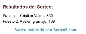 Lista de participantes: Lu wayar 982, Cristian Valdez 830, Ayelen gramajo 109, Florencia Sanchez 326, Miriam Paz 546, Lorena Gramajo 184, .