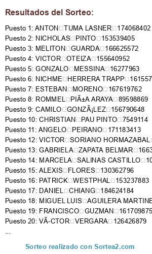 - Puesto 43: RODRIGO SANHUEZA 177502537