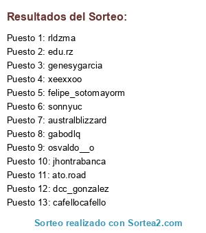 Lista de participantes: cafellocafello, rldzma (4), sonnyuc, jhontrabanca, genesygarcia, dcc_gonzalez, australblizzard, xeexxoo (2), edu.rz (2), gabodlq, felipe_sotomayorm, osvaldo__o, ato.road.