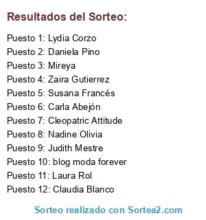 Lista de participantes: Laura Rol, Zaira Gutierrez, Daniela Pino, Susana Francés, Lydia Corzo, Claudia Blanco, Nadine Olivia, Carla Abejón, Cleopatric Attitude, blog moda forever, Judith Mestre, Mireya.