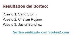 Lista de participantes: Manoli Barrera Fernandez, Anna Cumelles Estrella, Epi Rojano, Nuria Ramirez, Javi LN, Andrea Juárez Asensio, Natalia HInojosa, Anabel Reyes Parra, Joan Carls Gómez Veloz, Loly Rayo Martínez, David Reina Sachez, Núria Ramos Calles, Carlos Vela, TC Verónica, Cristina Moreno, Juan Ortiz Ramos, Laura Gallardo Ballesteros, David Garcia Serrat, Tony Gomez, Marta Rudilla, Javier Sanchez, David Garcia Romero, Ricardo Peixoto, Cristian Rojano, Zoraida Suarez, William AG, Sand Storm, Paqui EM, Mand Ese.