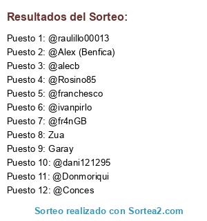 Lista de participantes: @raulillo00013, @Rosino85, @ivanpirlo, @Donmoriqui, @alecb, @Conces, @franchesco, @fr4nGB, @dani121295, @Alex (Benfica), Zua, Garay.