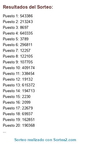 Resultados del sorteo: