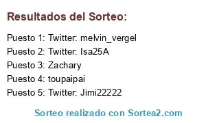 Lista de participantes: Acustiko, LOTOP, Alize, Jugador Geek, jesus88, Isa, Gorean, Link_DS, Nero, elgat, Cloud, toupaipai, Kratos3D, Camionero, cristine, nash, Cranky, FoxUnreal, Roola, Lutero, Jessie1984, Wayne, Jonny, KARL, beakman, seasmile, Melba, Satomi, Olimar, verdugofinal, Tazmania, Sense, Zachary, Tunes, Andie, vreika, ludovic, D.Vader, larchwells, emiliano, GodRage, Polgara, lesmes, Twitter: Acustiko1, Twitter: driada1976, Twitter: FRANCISCOJVACAL, Twitter: Isa25A, Twitter: Jcabdi, Twitter: G0rean, Twitter: melvin_vergel , Twitter: Jimi22222, Twitter: toupaipai1979, Twitter: elotronash, Twitter: ManoloVJ, Twitter: GodRage01, Antonia López, Alvaro Valdivia, Ana Isabel Domínguez Orol, Melvin Vergel, James Kavanagh, Manuel Mvj , Bernardo Del Aguila Ruiz.
