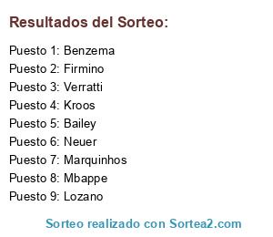 Lista de participantes: Mbappe, Verratti, Bailey, Lozano, Neuer, Benzema, Kroos, Firmino, Marquinhos.