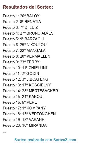 Lista de participantes: KOMPANY, GODIN, J.BOATENG, HEINZE, PEPE, HUMMELS, D. LUIZ, BENATIA, BARZAGLI, MIRANDA, CHIELLINI, SAKHO, VERTONGHEN, DANTE, K. TOURE, PIQUE, KOSCIELNY, VARANE, VIDIC, VERMAELEN, KABOUL, MANGALA, TERRY, ALEX, N'KOULOU, BALOY, BRUNO ALVES, MERTESACKER.