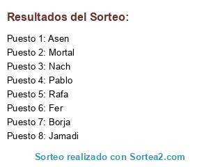 Lista de participantes: Kortana, Franxisco88, Mercuxo, Querol, Cheche, Ponpon, DiegoRdz, Raulinho Jugon, Itogol, Cronos, Vladi, Dealer, Lenders, Rubioh, Joseastra.