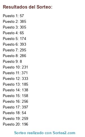 Resultados del sorteo: