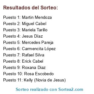 Lista de participantes: Roxana Diaz, Jesus Díaz, Kelly (Novia de Jesus), Mariela Tarillo, Miguel Cabel , Carmencita López, Rosa Escobedo, Rafael Silva, Mercedes Pareja, Erick Cabel, Martin Mendoza, .