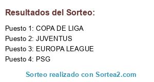 Lista de participantes: EUROPA LEAGUE, COPA DE LIGA, JUVENTUS, PSG.