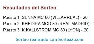 Lista de participantes: KHEDIRA MCD 80 (REAL MADRID) - 20, K.KALLSTROM MC 80 (LYON) - 20, SENNA MC 80 (VILLARREAL) - 20.