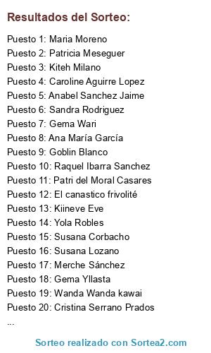 Lista de participantes: Tamara Osuna (2 participaciones), Ana B Soler (2 participaciones), Cristina Serrano Prados, Ana María García, Sia Hime, Vanessa Honrado Machuca, Merche Sánchez, Carolina Cruz, Lois wayne, Gema Wari, Patricia Meseguer, Irene Itxu, Raquel Ibarra Sanchez (2 participaciones), Silvia Ortiz Casanovas, Maria Jose Ruda Muñoz (2 participaciones), Toñi Garcia (2 participaciones), Noelia Peinado Andrades, Carolina Boixeda Perez, Argiñe Guitierrez, Wanda Wanda kawai, El canastico frivolité (2 participaciones), Jessica Cutillas Berbegal (2 participaciones), Susana Corbacho (2 participaciones), Mariola pro, Kiineve Eve, Anabel Sanchez Jaime (2 participaciones), Naly Leto, Rocio Ma Ba, Anna Rus Espin, Sara Ortega Almoril, Susana Lozano, Ana Serralbo, Toñi Ramos Diaz (2 participaciones), Sandra Rodriguez, Rosa Moliné, Gabriela Carrillo, Rocio Martinez Silva, Almudena Alicia Sanchez, Cristina Motola, Rosa Corraliza Cubas, Marian Bleu Bleu, Patri del Moral Casares (2 participaciones), Gema Rodriguez, Yola Robles (2 participaciones), Anika Santos Blanco, Mel Reguera (2 participaciones), Judit Romer Gonzalez, Asato Tsuzuki, Goblin Blanco, Eva Casale Dunae, Kiteh Milano, Silvia Silvikeka, Maria Moreno (2 participaciones), Beatriz Modia, MariCarmen Mora, Caroline Aguirre Lopez (2 participaciones), Gema Yllasta, Fashion magazine for your blythe and pullip, Sandra GL, Roser Mata , Roser Mata.