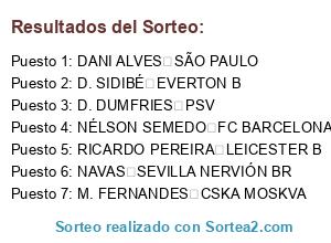 Lista de participantes: D. DUMFRIES PSV, DANI ALVES SÃO PAULO, NÉLSON SEMEDO FC BARCELONA, NAVAS SEVILLA NERVIÓN BR, M. FERNANDES CSKA MOSKVA, D. SIDIBÉ EVERTON B, RICARDO PEREIRA LEICESTER B.