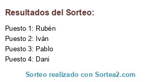 Lista de participantes: Rubén, Iván, Dani, Pablo.