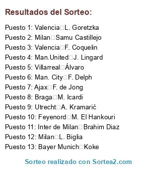 Resultados del sorteo: