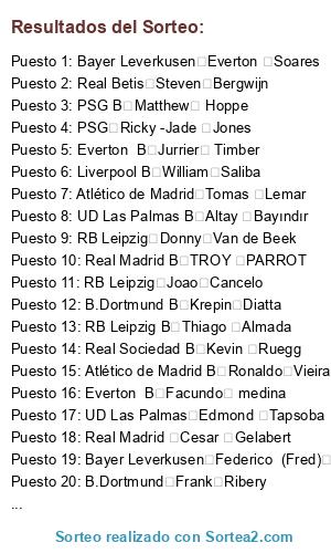 Resultados del sorteo: