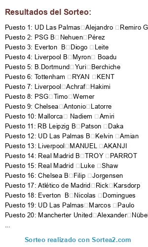 Resultados del sorteo: