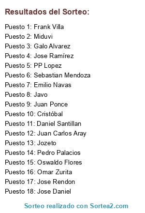 Lista de participantes: Juan Ponce, Omar Zurita, Jose Rendon, Daniel Santillan, Galo Alvarez, PP Lopez, Emilio Navas, Javo, Juan Carlos Aray, Miduvi, Jose Daniel, Cristóbal, Jozeto, Oswaldo Flores, Frank Villa, Jose Ramírez, Sebastian Mendoza, Pedro Palacios.