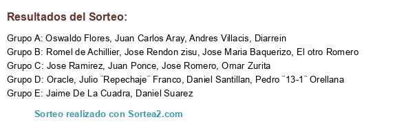 Lista de participantes: Daniel Santillan, Juan Carlos Aray, Juan Ponce, Jose Rendon zisu, Omar Zurita, Pedro ¨13-1¨ Orellana, Julio ¨Repechaje¨ Franco, Diarrein, Romel de Achillier, Oswaldo Flores, Jaime De La Cuadra, Jose Maria Baquerizo, Daniel Suarez, Jose Ramirez, Oracle, Andres Villacis, Jose Romero, El otro Romero.