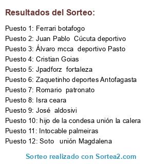 Lista de participantes: hijo de la condesa unión la calera, Zaquetinho deportes Antofagasta, Cristian Goias, Jpadforz fortaleza, Isra ceara, Ferrari botafogo, Romario patronato, José aldosivi, Soto unión Magdalena, Álvaro mcca deportivo Pasto, Juan Pablo Cúcuta deportivo, Intocable palmeiras.
