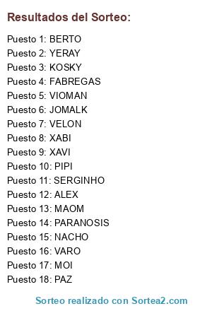 Lista de participantes: PARANOSIS, KOSKY, PAZ, VARO, YERAY, FABREGAS, MAOM, PIPI, MOI, NACHO, JOMALK, ALEX, XAVI, VELON, SERGINHO, XABI, BERTO, VIOMAN.